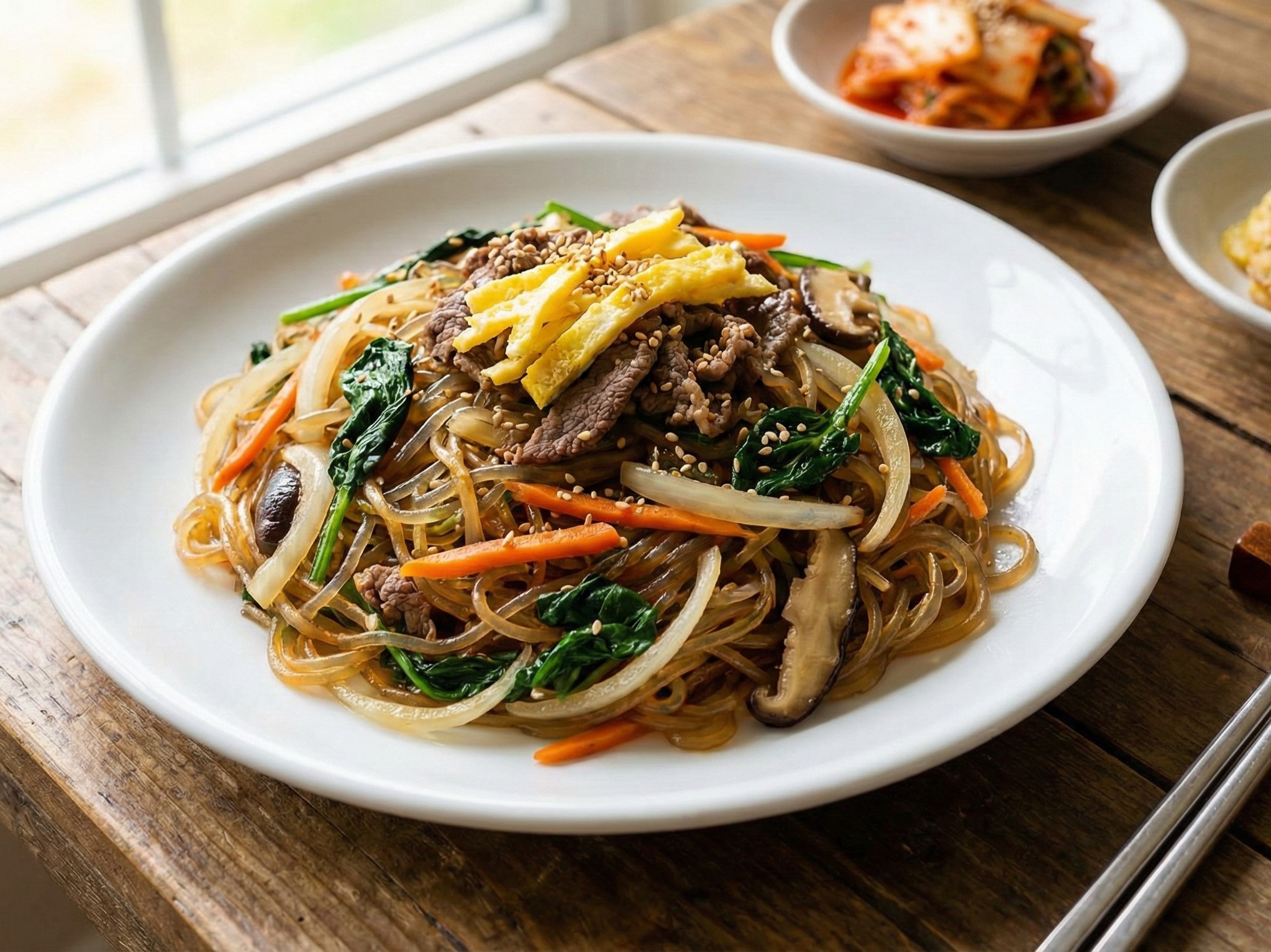 잡채의 중심은 채소가 아니라 당면(전분)이고, 맛의 핵심은 간장이 아니라 설탕과 기름이다.
