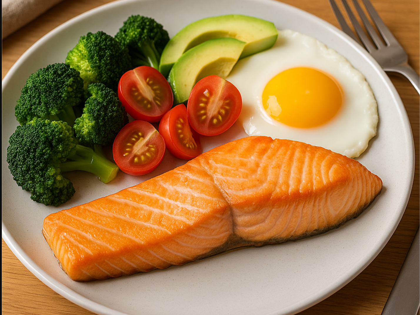 연어와 채소가 담긴 건강식 아침