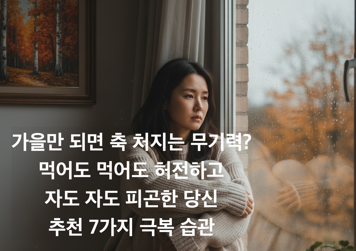 창문 밖 풍경은 너무 예쁜데, 내 몸은 왜 이렇게 축 처지는 무기력에 잠겨있는 걸까요? 🍂 아침에 일어나기가 너무 힘들고, 끊임없이 먹어도 먹어도 허전한 느낌이 드신다면 '시즌성 우울증(계절성 정서 장애)'을 의심해 봐야 합니다. 낮 시간이 급격히 짧아지면서 햇빛 노출이 줄어드는 가을엔, 미국 NIH 보고에 따르면 전체 인구의 약 5%가 이 특별한 우울감을 겪습니다. 오늘은 시즌성 우울증을 이겨내는 과학적 해결책인 햇빛·비타민D·운동을 중심으로, 가을 무기력을 극복하는 7가지 핵심 습관을 자세히 알려드릴게요.