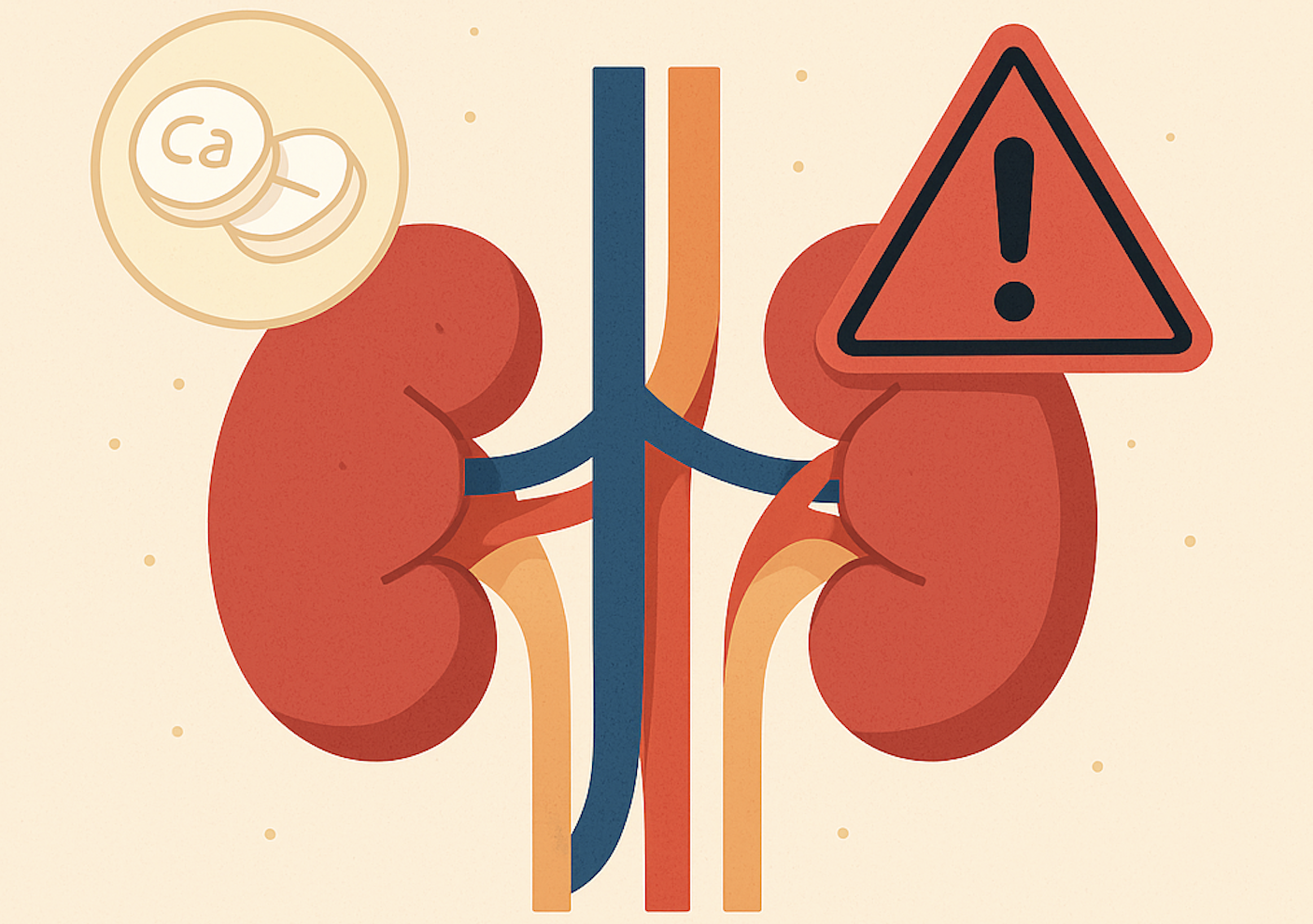 - 🚨 신장 결석 위험: 과도한 칼슘이 신장과 소변 길에서 돌처럼 딱딱하게 굳어버립니다. 신장 결석은 극심한 통증과 함께 신장 기능 저하의 주범이 돼요.