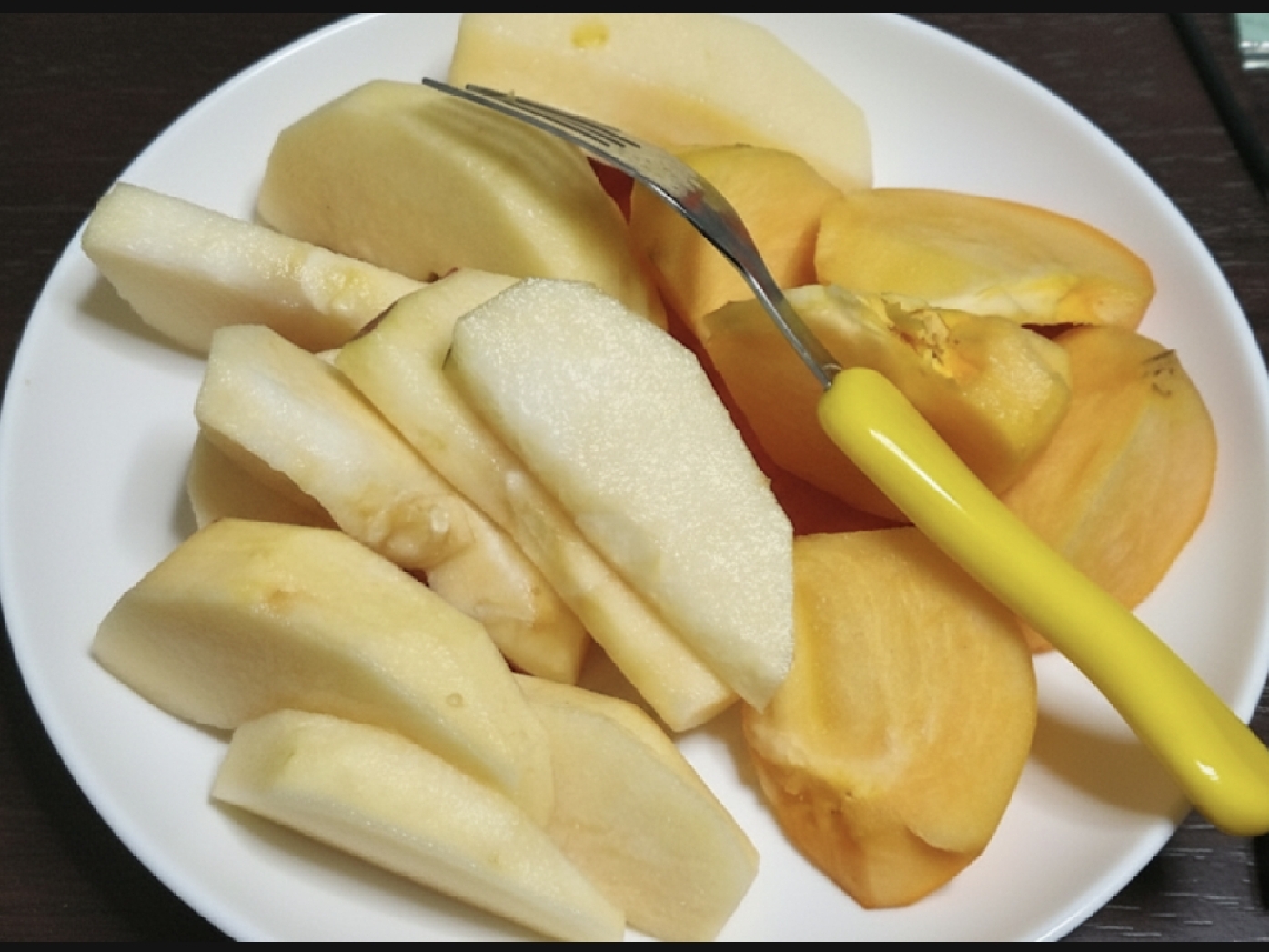 냉장고 속 사과 하나와 감 하나로 대신하기로 했다.
