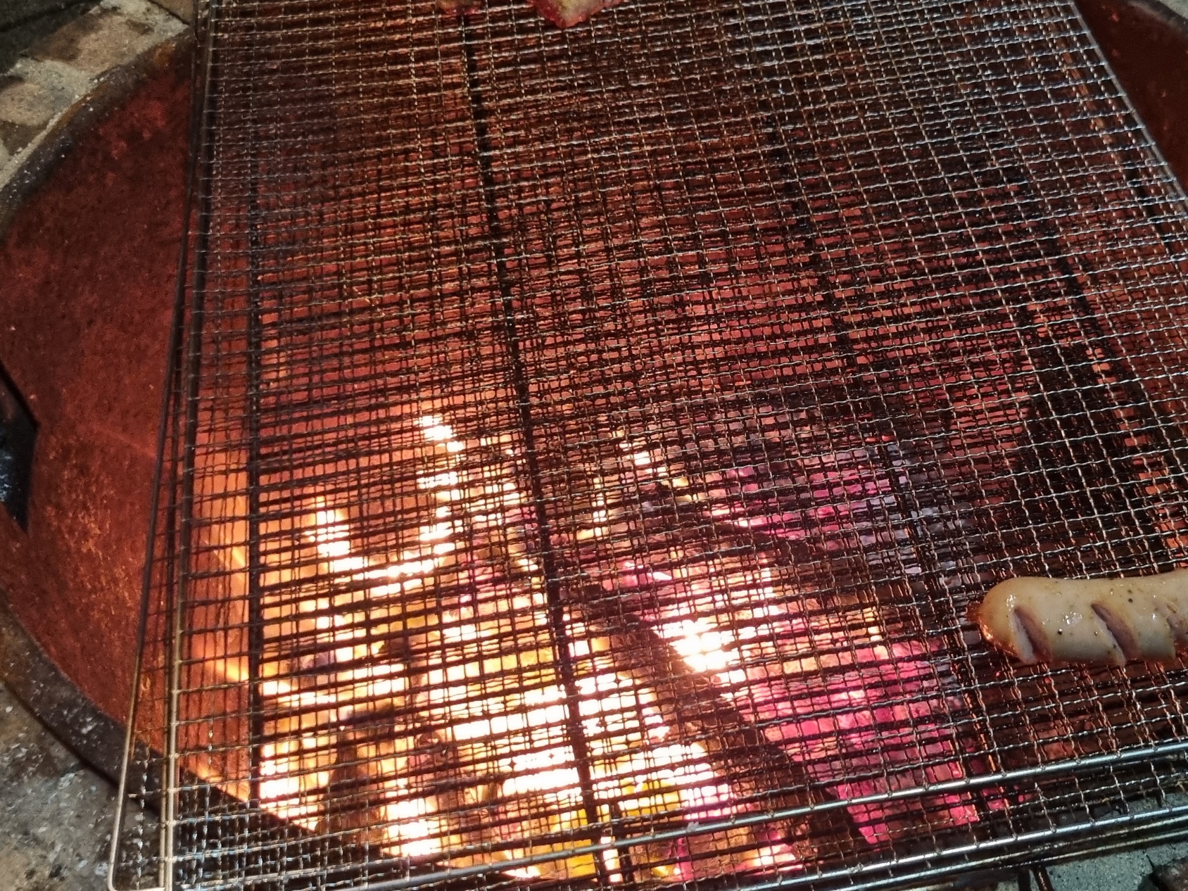 불 앞에서 구워지는 고기를 보며