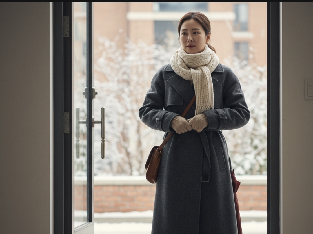 외출 전, 옷깃을 단단히 여미고 천천히 나서야겠다.