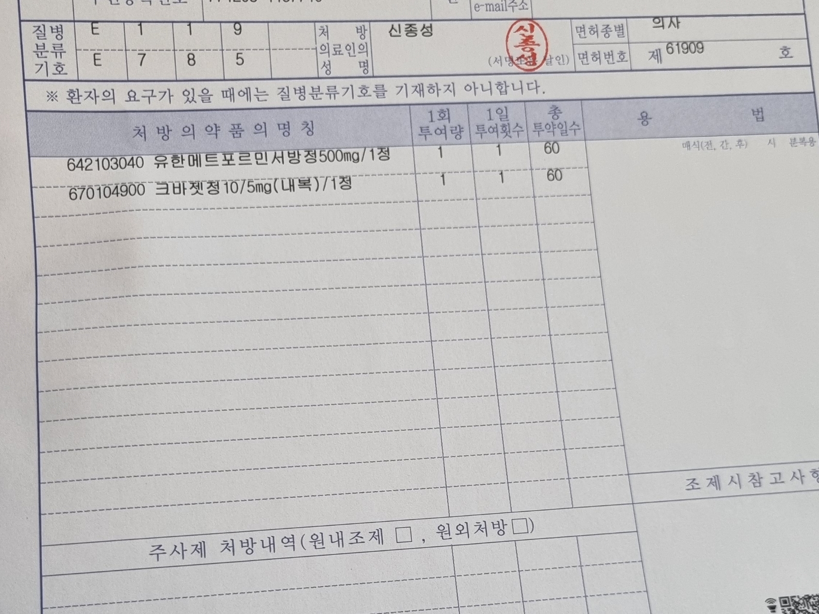 의사 선생님의 최종 처방은 당뇨약 메트포르민 1알과 고지혈증 약 크바젯(Kvazet) 1알, 총 두 알이었다. 당뇨약의 성분이 줄어든 기쁨은 이루 말할 수 없었지만, 고지혈증 약인 크바젯을 계속 복용해야 한다는 현실은 내게 '아직 방심하지 말라'는 경고장 같았다.