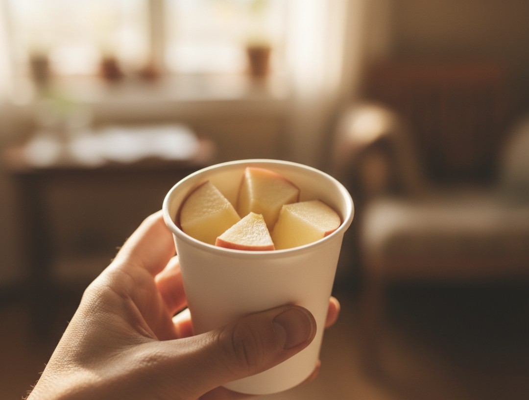 안에는 잘게 썰어진 사과 반쪽이 담겨 있었다.