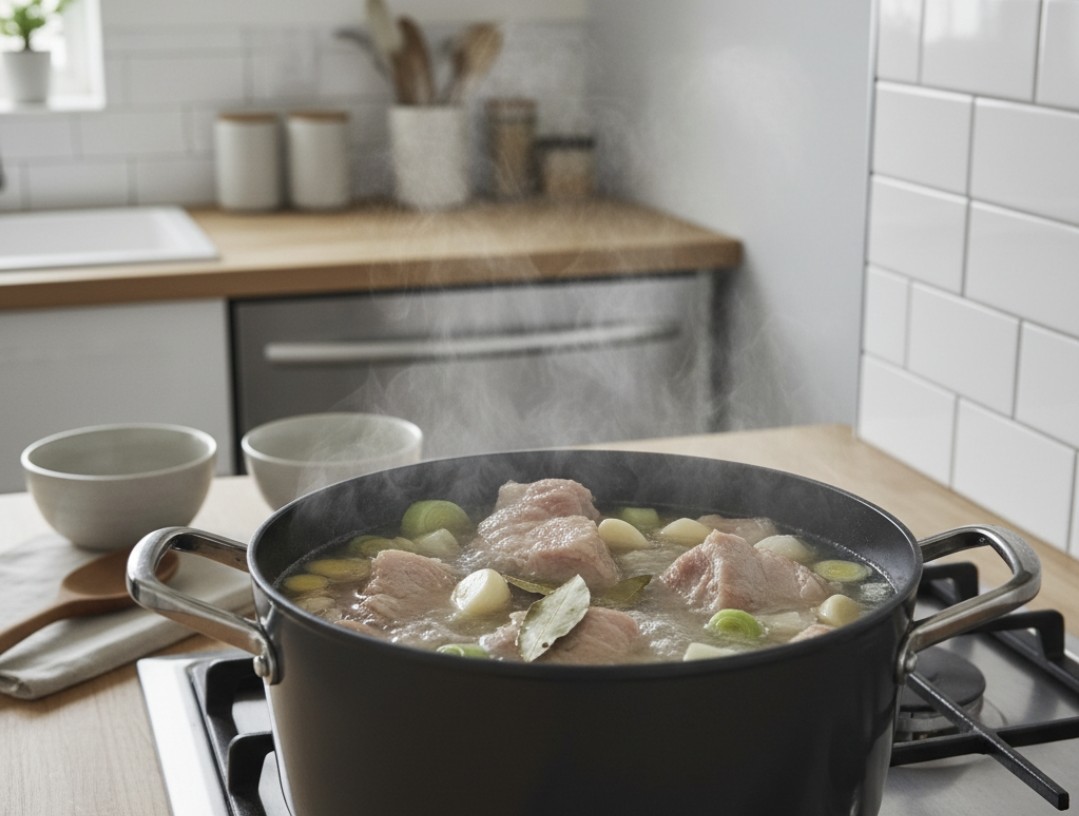 - 장점: 삶는 과정에서 남은 미세한 지방마저 물로 빠져나가며, 국물은 맑고 고기는 담백하고 부드러워진다. 소금 없이도 재료 본연의 맛으로 충분한 만족감을 느낄 수 있다.