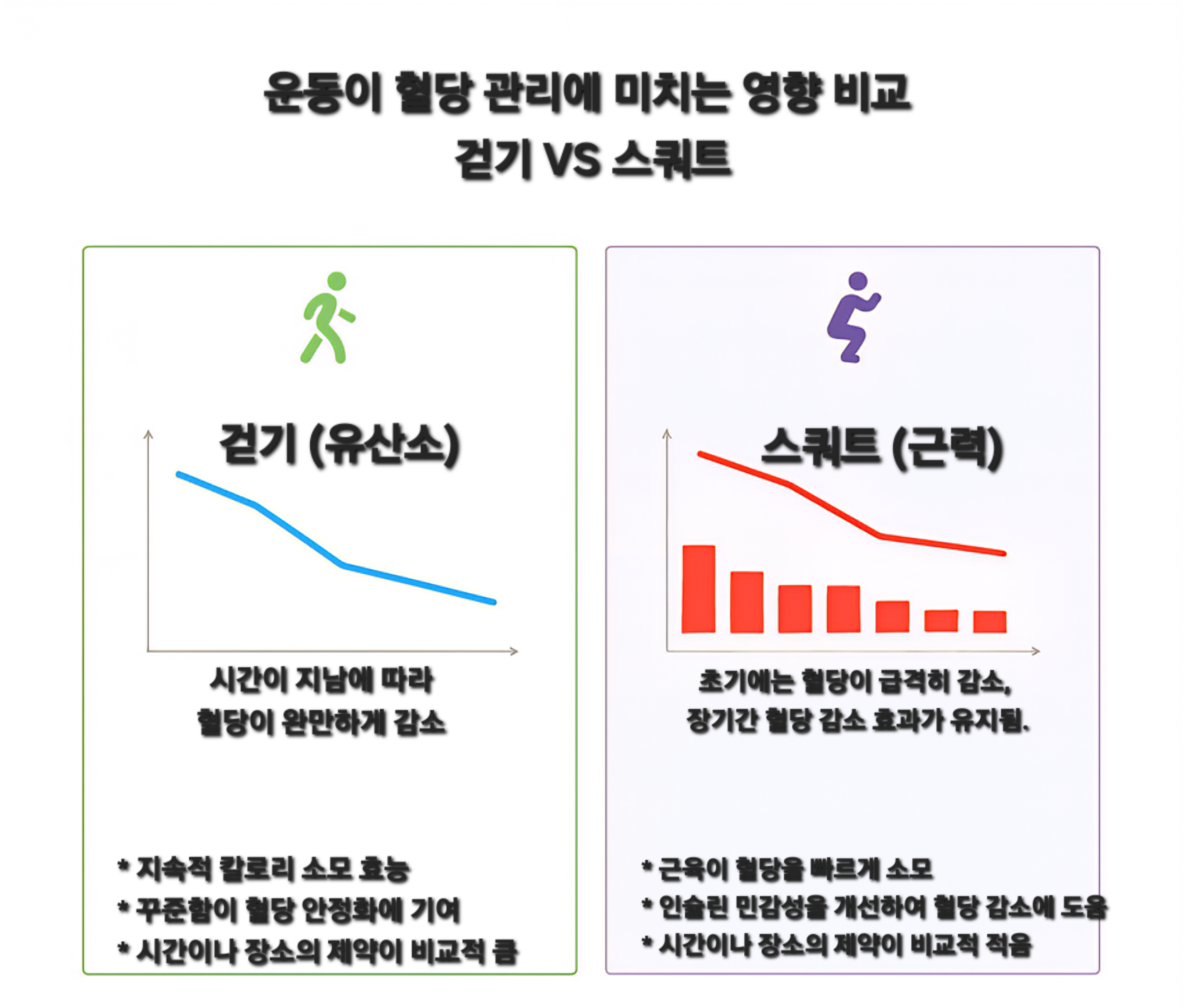 스쿼트 vs 걷기: 혈당에 미치는 영향 비교 분석