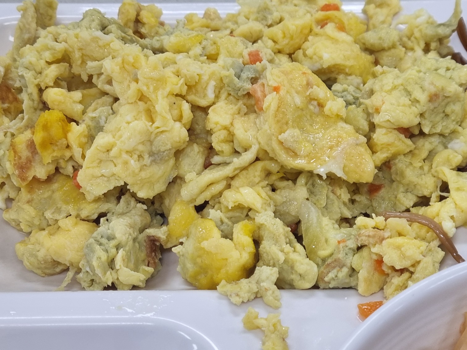 달걀스크램블은 오늘 메뉴 중 가장 믿을 만한 단백질. 부드럽고 담백한 맛이 입안을 잠깐 쉬게 해준다. 단백질과 지방이 혈당을 잡아준다는 건 몸으로 이미 익힌 사실이라, 이 반찬은 편하게 먹는다. 반찬을 충분히 먹고 나니 밥을 얼마나 먹을지가 고민됐다. 결국 반 공기의 반만 먹고 숟가락을 내려놨다. 이 정도면 오늘도 ‘최악은 피했다’는 기분이 든다.