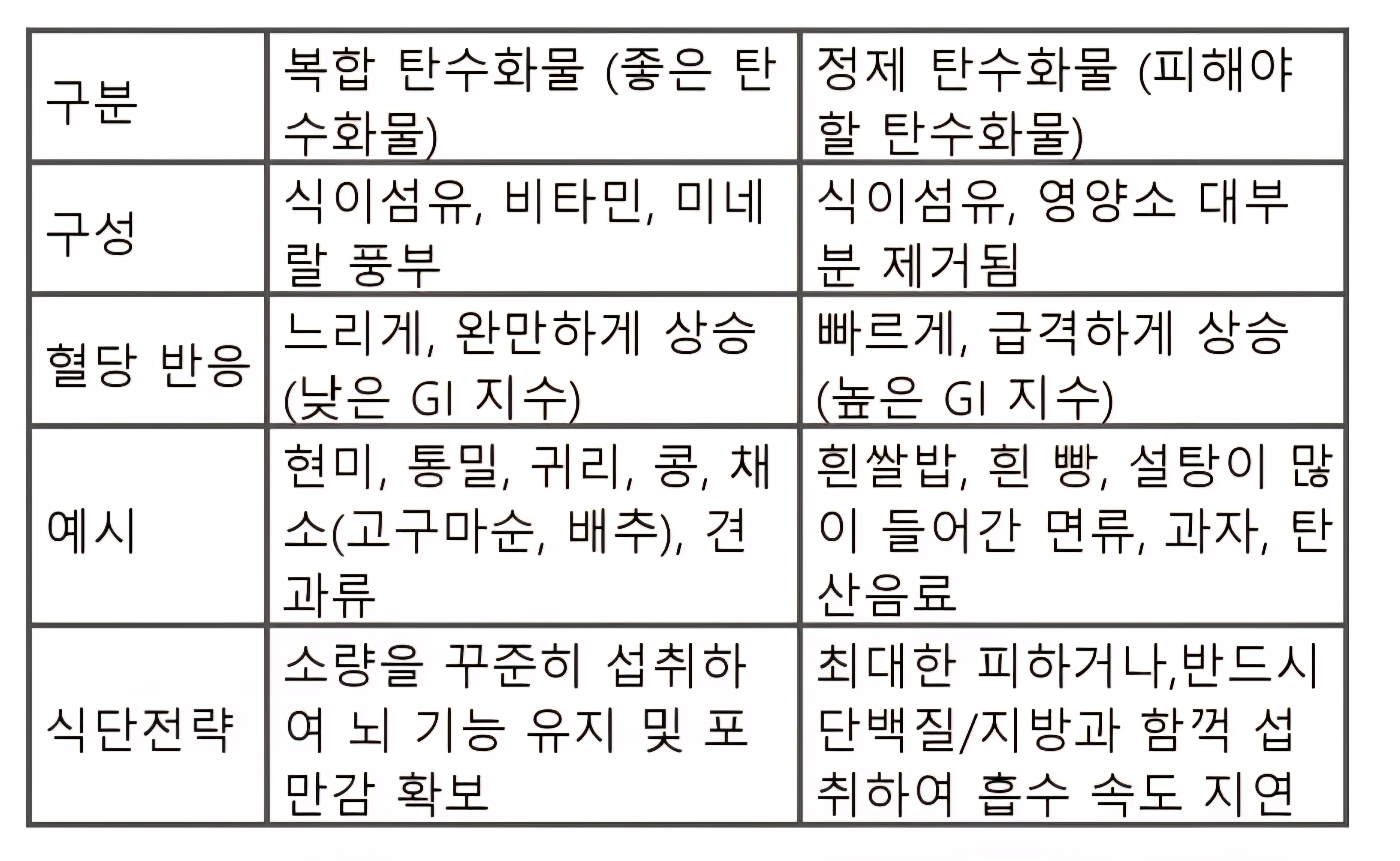 복합 탄수화물 vs 정제 탄수화물